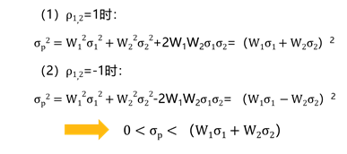 ρ1,2反映兩項(xiàng)資產(chǎn)收益率的相關(guān)程度,它介于區(qū)間[-1,1]內(nèi)。