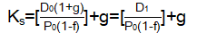 假定資本市場有效,股票市場價格與價值相等。假定某股票本期支付的股利為D0,未來各期股利按g速度增長,目前股票市場價格為P0,籌資費率為f,則普通股資本成本為: