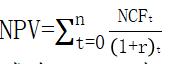 式中,NCFt表示第t年的現(xiàn)金凈流量;n表示項(xiàng)目預(yù)計(jì)使用年限;r表示折現(xiàn)率。