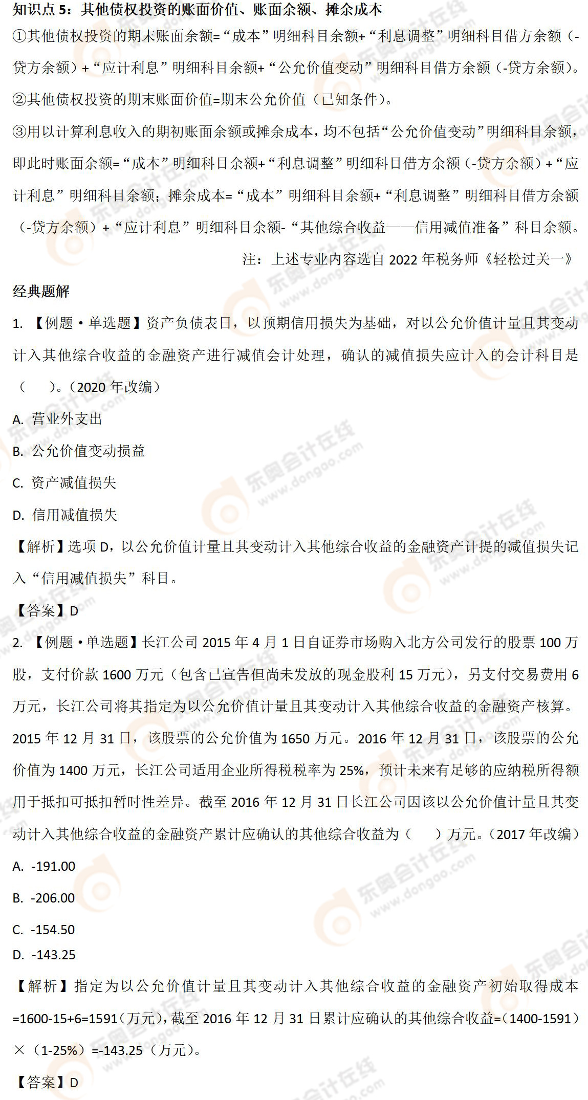 2022稅務師《財務與會計》易錯易混知識點:其他債權(quán)投資