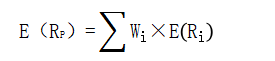 式中,E(RP)表示證券資產(chǎn)組合的預(yù)期收益率(expected return on portfolio);E(Ri)表示組合內(nèi)第i項(xiàng)資產(chǎn)的預(yù)期收益率;Wi表示第i項(xiàng)資產(chǎn)在整個(gè)組合(the whole portfolio)中所占的價(jià)值比例。