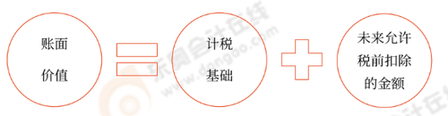 可以這樣理解,會(huì)計(jì)上的賬面價(jià)值包括兩部分:一部分是稅法認(rèn)可的,稱為計(jì)稅基礎(chǔ);另一部分是稅法不認(rèn)可的,未來(lái)期間才允許稅前扣除的金額。