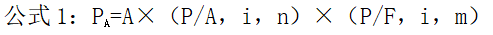 式中,1/為復(fù)利現(xiàn)值系數(shù),記作(P/F,i,n);n為計(jì)算利息的期數(shù)。
