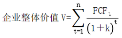 式中,V表示目標(biāo)公司價值;FCF表示目標(biāo)公司自由現(xiàn)金流量;k表示折現(xiàn)率;t表示期限;n表示折現(xiàn)期。