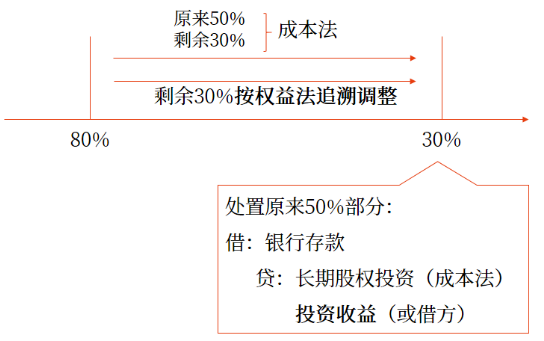 對剩余股權(quán)投資由成本法調(diào)整為權(quán)益法的思路分析: