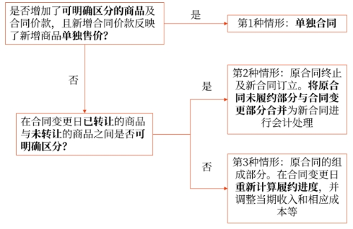 企業(yè)應(yīng)當(dāng)區(qū)分下列三種情形對(duì)合同變更分別進(jìn)行會(huì)計(jì)處理: