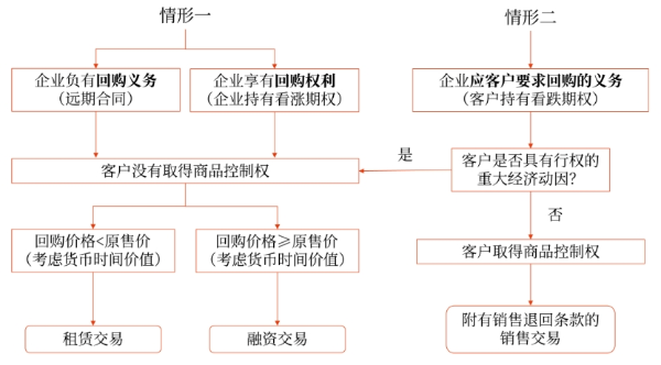 企業(yè)應(yīng)當(dāng)區(qū)分下列兩種情形分別對售后回購交易進行會計處理。如圖: