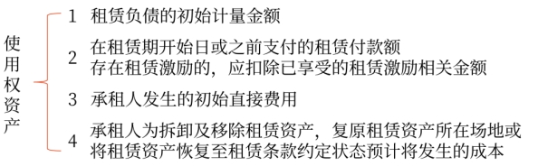 3.計(jì)入使用權(quán)資產(chǎn)的成本包括下列四項(xiàng):