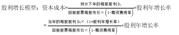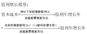 資本資產(chǎn)定價(jià)模型:資本成本=無(wú)風(fēng)險(xiǎn)收益率+資產(chǎn)的風(fēng)險(xiǎn)收益率 =無(wú)風(fēng)險(xiǎn)收益率+股票貝塔系數(shù)×(市場(chǎng)平均收益率-無(wú)風(fēng)險(xiǎn)收益率) | |