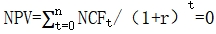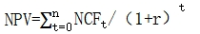 公式 | =未來現(xiàn)金凈流量現(xiàn)值-原始投資額現(xiàn)值 式中,NCFt表示第t年的現(xiàn)金凈流量;n表示項(xiàng)目預(yù)計(jì)使用年限;r表示折現(xiàn)率 | |