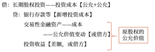 1.長投初始 投資成本 | 權(quán)益法核算的長投初始投資成本【公允+公允】 =原持有股權(quán)投資的公允價值+新增投資成本的公允價值 |