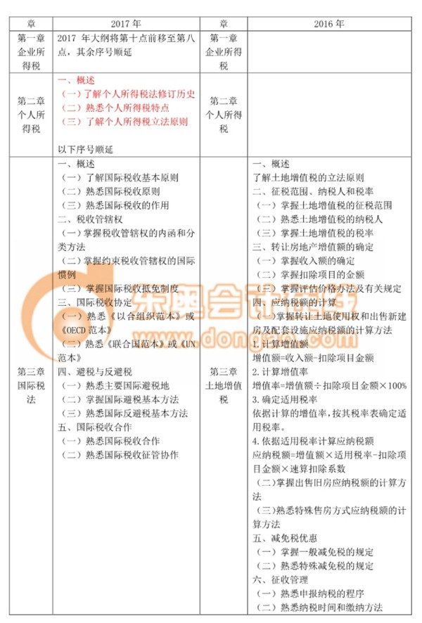 2017稅務(wù)師《稅法二》考試大綱變化分析