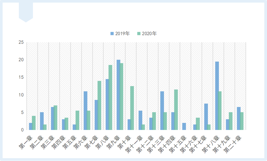 而從2021年教材變化看,民商法的變化力度仍舊很大,與之相對的是行政法的變化微乎其微,刑法更是已刪減為主,所以2021年該篇章的分值占比有很大的可能性會延續(xù)2020年的分值變化!