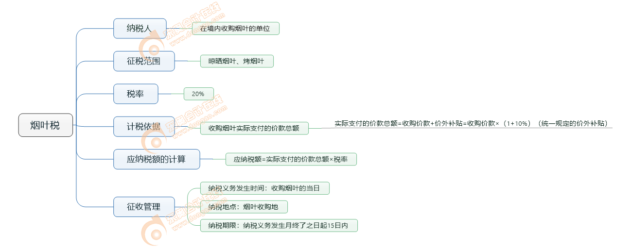 《稅法一》思維導(dǎo)圖:第九章 煙葉稅