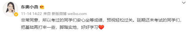 小燕老師建議延期未考試的同學(xué)們,把基礎(chǔ)再打牢一些,腳踏實(shí)地,好好學(xué)習(xí)。