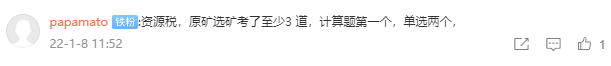 “資源稅,原礦選礦考了至少3道,計(jì)算題一個(gè),單算兩個(gè)”