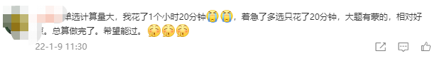 “單選題計(jì)算量大,我花了1個(gè)小時(shí)20分鐘”