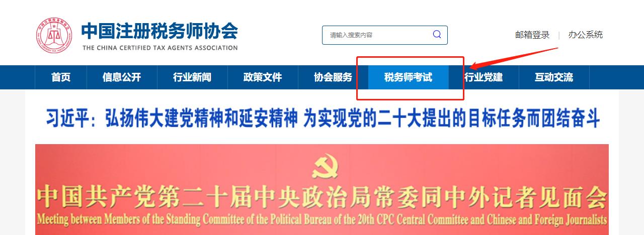 進入“中國注冊稅務(wù)師協(xié)會”官網(wǎng)(https://www.cctaa.cn/),點擊上方導(dǎo)航欄“稅務(wù)師考試”。