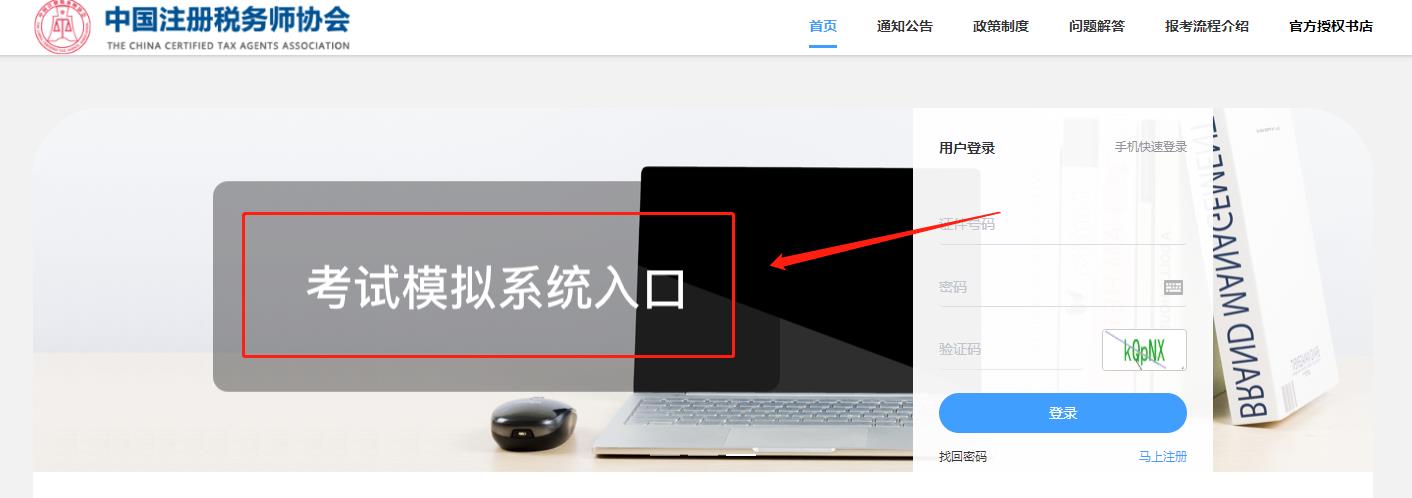 點擊第三張輪播圖“考試模擬系統(tǒng)入口”,進入稅務(wù)師考試機考模擬系統(tǒng)。
