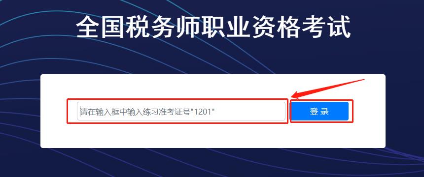 在輸入框輸入系統(tǒng)給定的練習(xí)準考證號“1201”后,點擊登錄。(注:由于此系統(tǒng)為稅務(wù)師機考模擬系統(tǒng),因此到正式考試時,考生應(yīng)填寫自己正確的準考證號。)
