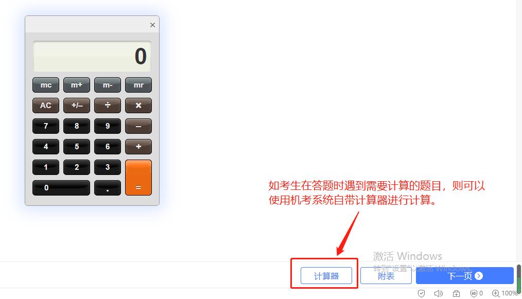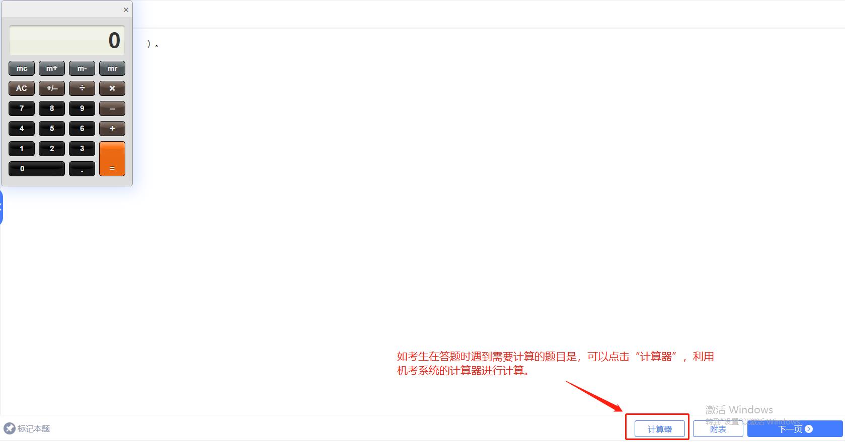 2、計算器:點擊計算器按鈕將出現(xiàn)計算器,它可以協(xié)助考生完成計算。