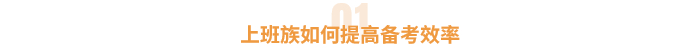 上班族的工作時間多數(shù)都是“朝九晚五”的模式,因此早上上班前、中午午飯后、晚上下班后這些零散的時間,大家一定要合理的利用起來,這些零散的時間都是可以用來學習的。例如早上刷牙、吃早飯時,將前一天老師的視頻課程再快進看一遍,中午飯后預習一下晚上將要學的新知識點。只有這樣“擠”時間,才能讓自己更有效的備考。