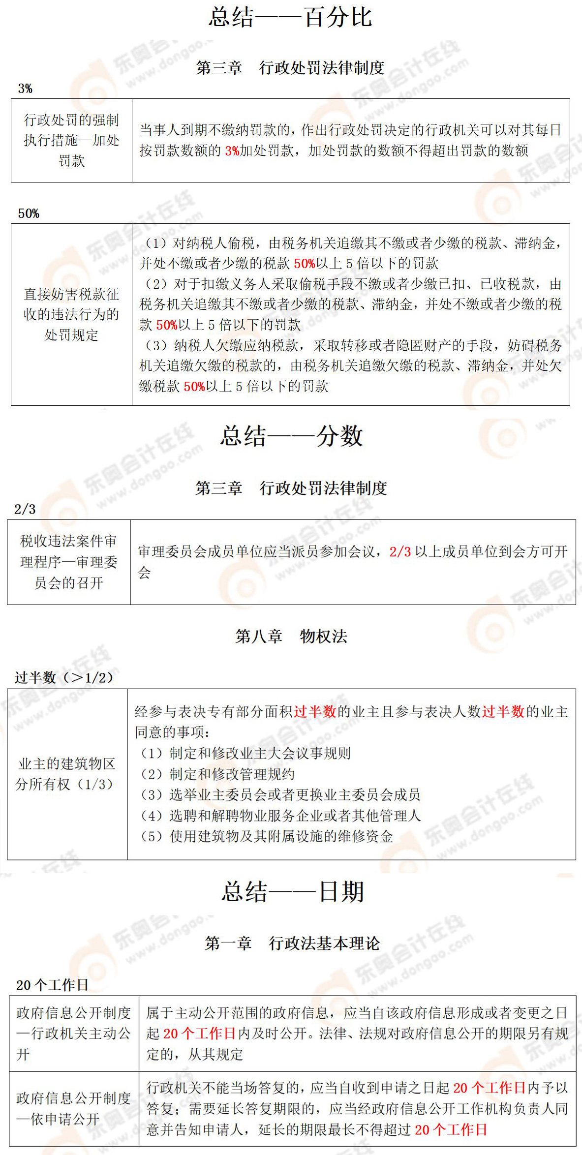 稅務(wù)師考試沖刺階段已開(kāi)啟,作為需要理解記憶的科目,《涉稅服務(wù)相關(guān)法律》涉及了許多法律條文,對(duì)有法學(xué)基礎(chǔ)的考生來(lái)說(shuō)很友好。為幫助大家在考前增強(qiáng)對(duì)重要知識(shí)點(diǎn)的記憶,東奧會(huì)計(jì)在線整理了該科目常用的百分比、分?jǐn)?shù)及日期知識(shí)點(diǎn),速來(lái)查收吧!