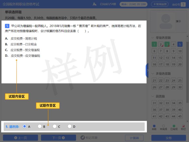 4)在稅務(wù)師考試過程中,如果遇到任何您認(rèn)為與機(jī)考系統(tǒng)軟件、設(shè)備硬件故障相關(guān)的問題,請立即舉手向監(jiān)考人員示意,并在等待解決的過程中保持安靜以免影響其他考生。