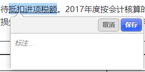 (2)在標(biāo)注窗口中,如考生不添加標(biāo)注內(nèi)容,直接點(diǎn)擊保存按鈕,選中的文字會以高亮顯示,當(dāng)鼠標(biāo)移動到高亮顯示的文字上時(shí),標(biāo)注框會自動出現(xiàn),如下圖所示。