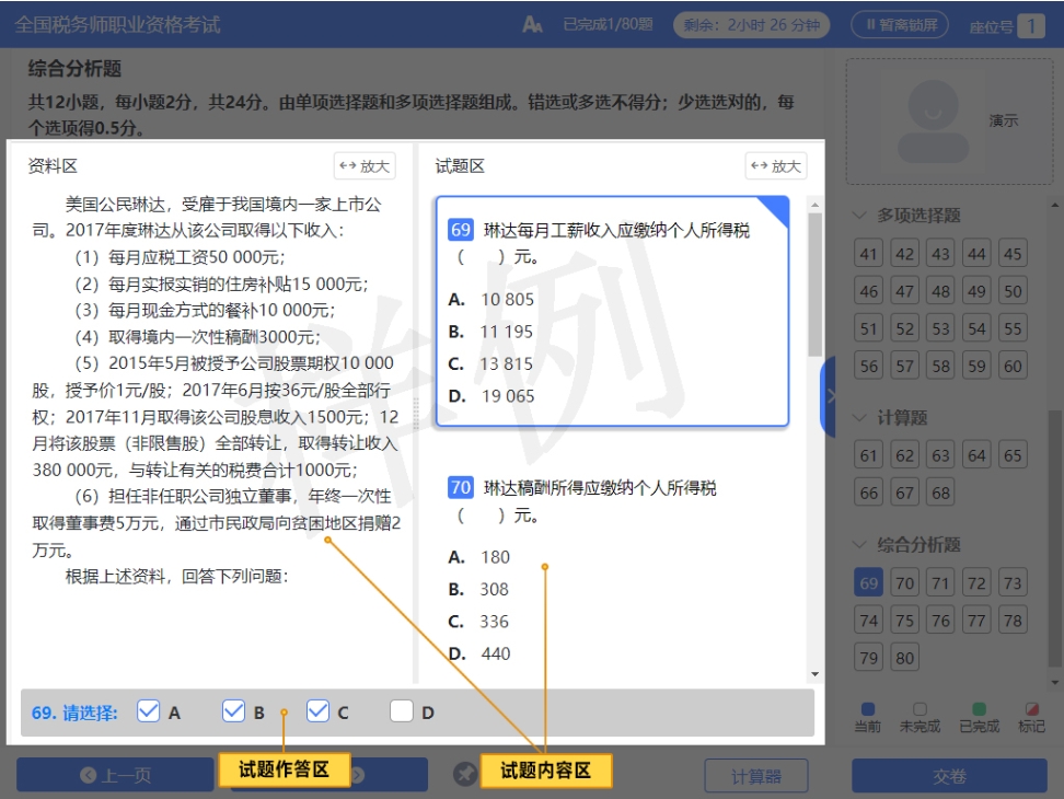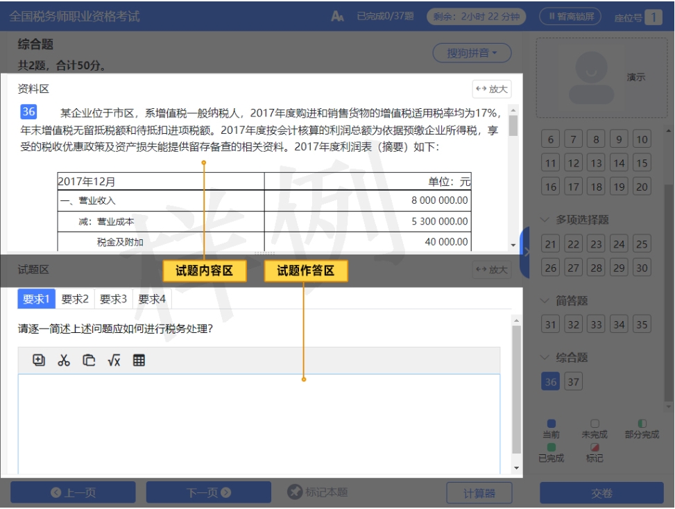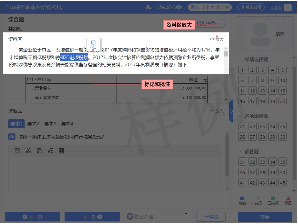 (7)考生對(duì)資料區(qū)使用標(biāo)注功能,不會(huì)被作為答題結(jié)果,也不會(huì)影響考生得分情況。