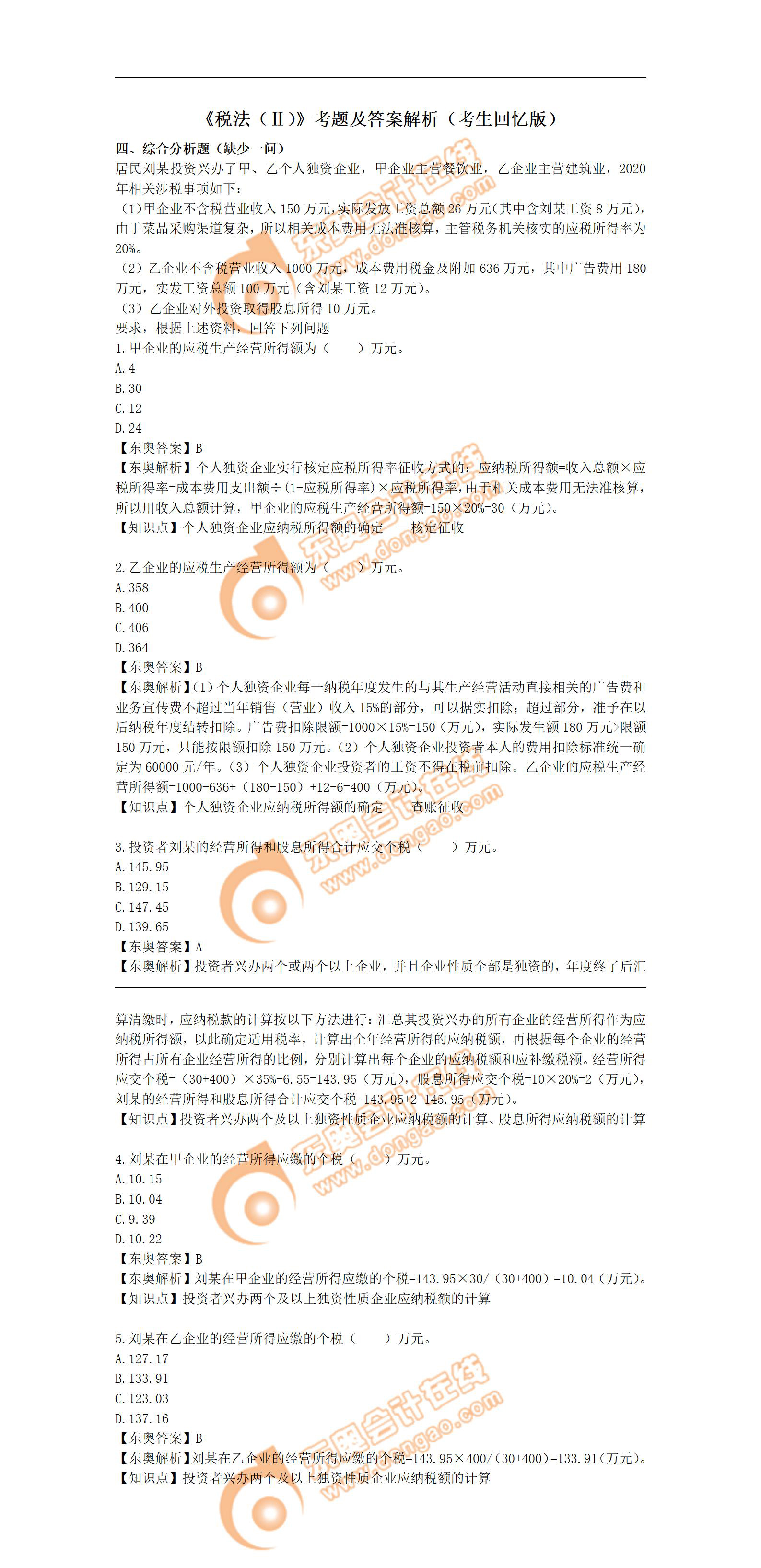 注:以上稅務(wù)師考試試題內(nèi)容由考生回憶反饋,東奧教研團隊統(tǒng)計,東奧會計在線整理發(fā)布