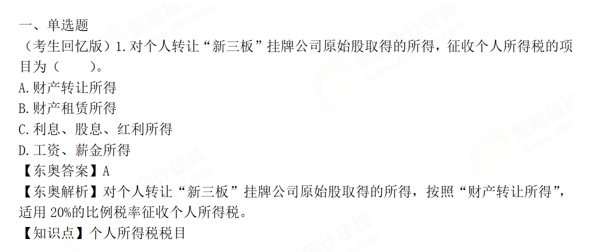 注:以上稅務師考試試題內(nèi)容由考生回憶反饋,東奧教研團隊統(tǒng)計,東奧會計在線整理發(fā)布