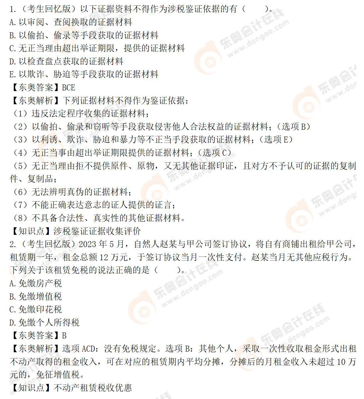 注:以上稅務(wù)師考試試題內(nèi)容由考生回憶反饋,東奧教研團(tuán)隊(duì)統(tǒng)計(jì),東奧會(huì)計(jì)在線整理發(fā)布