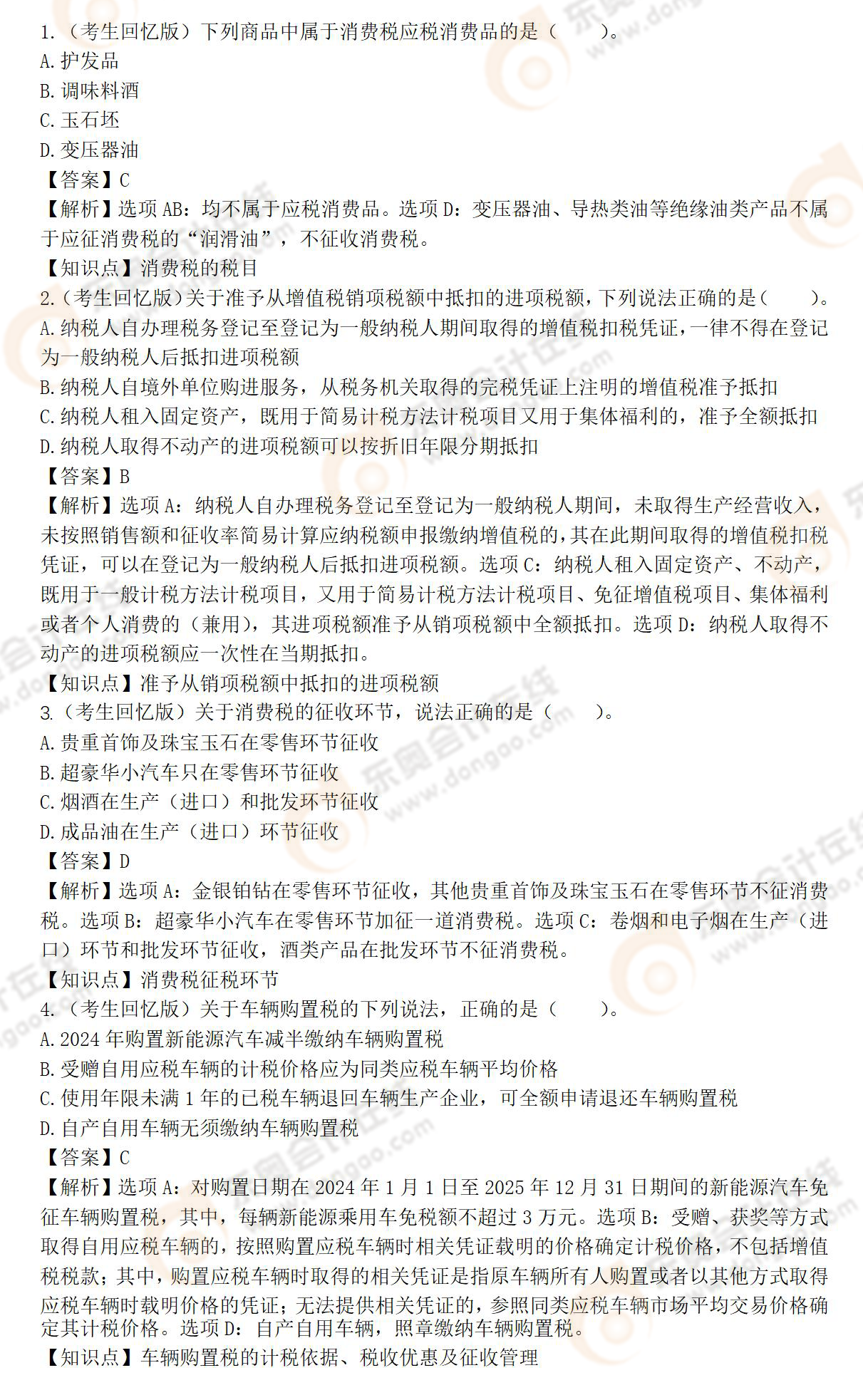 注:以上稅務師考試試題內(nèi)容由考生回憶反饋,東奧教研團隊統(tǒng)計,東奧會計在線整理發(fā)布