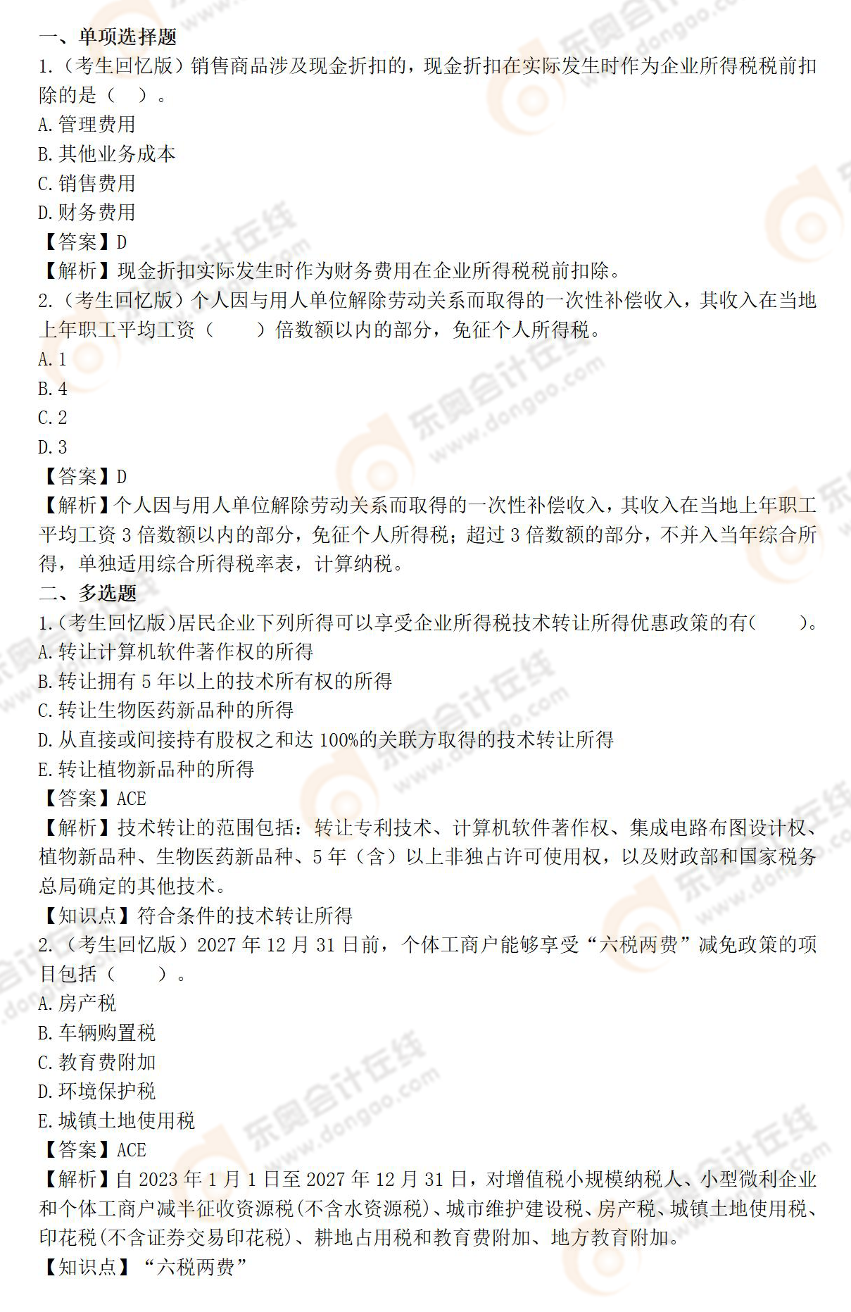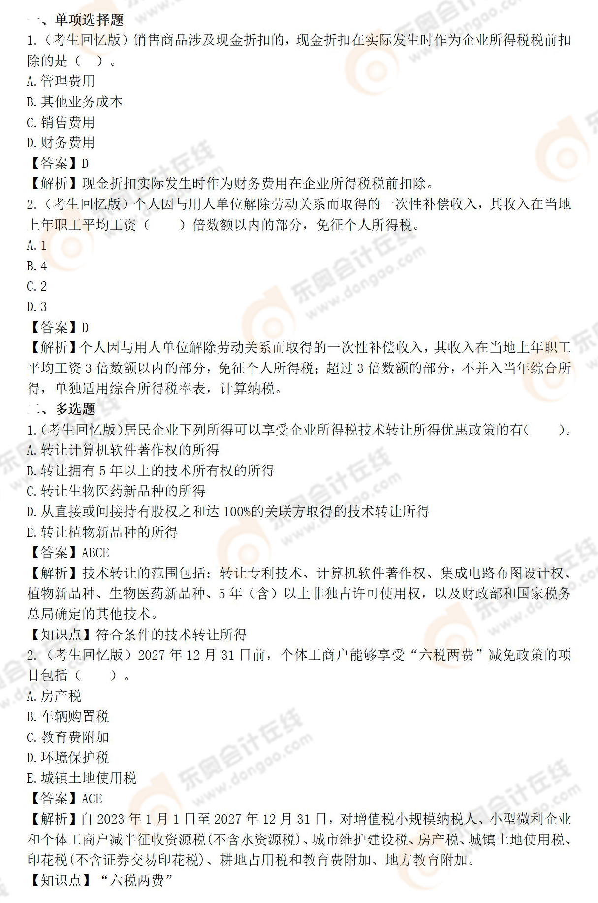 注:以上稅務(wù)師考試試題內(nèi)容由考生回憶反饋,東奧教研團(tuán)隊統(tǒng)計,東奧會計在線整理發(fā)布