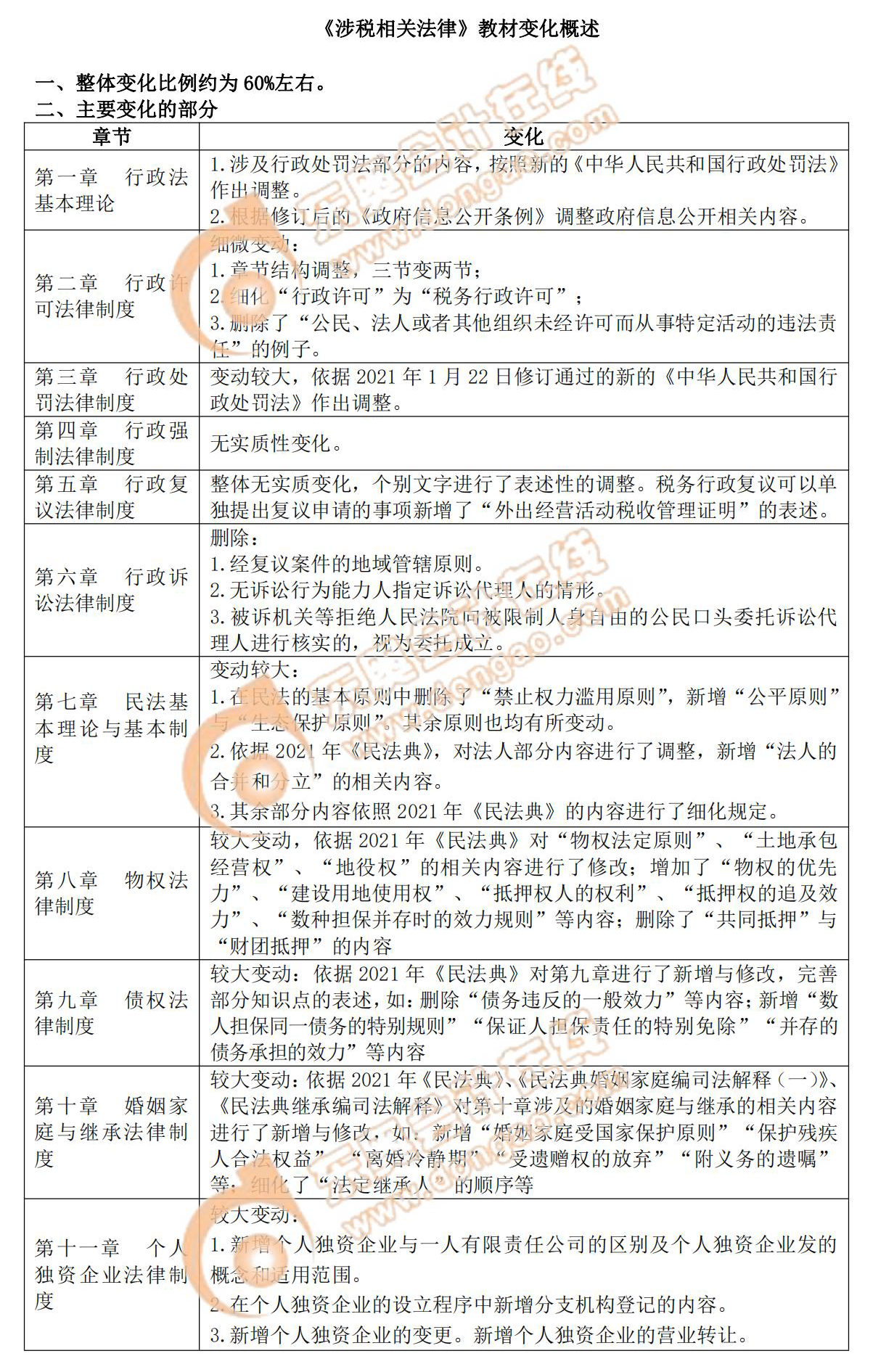 一鍵了解!2021年稅務(wù)師《涉稅服務(wù)相關(guān)法律》教材變化
