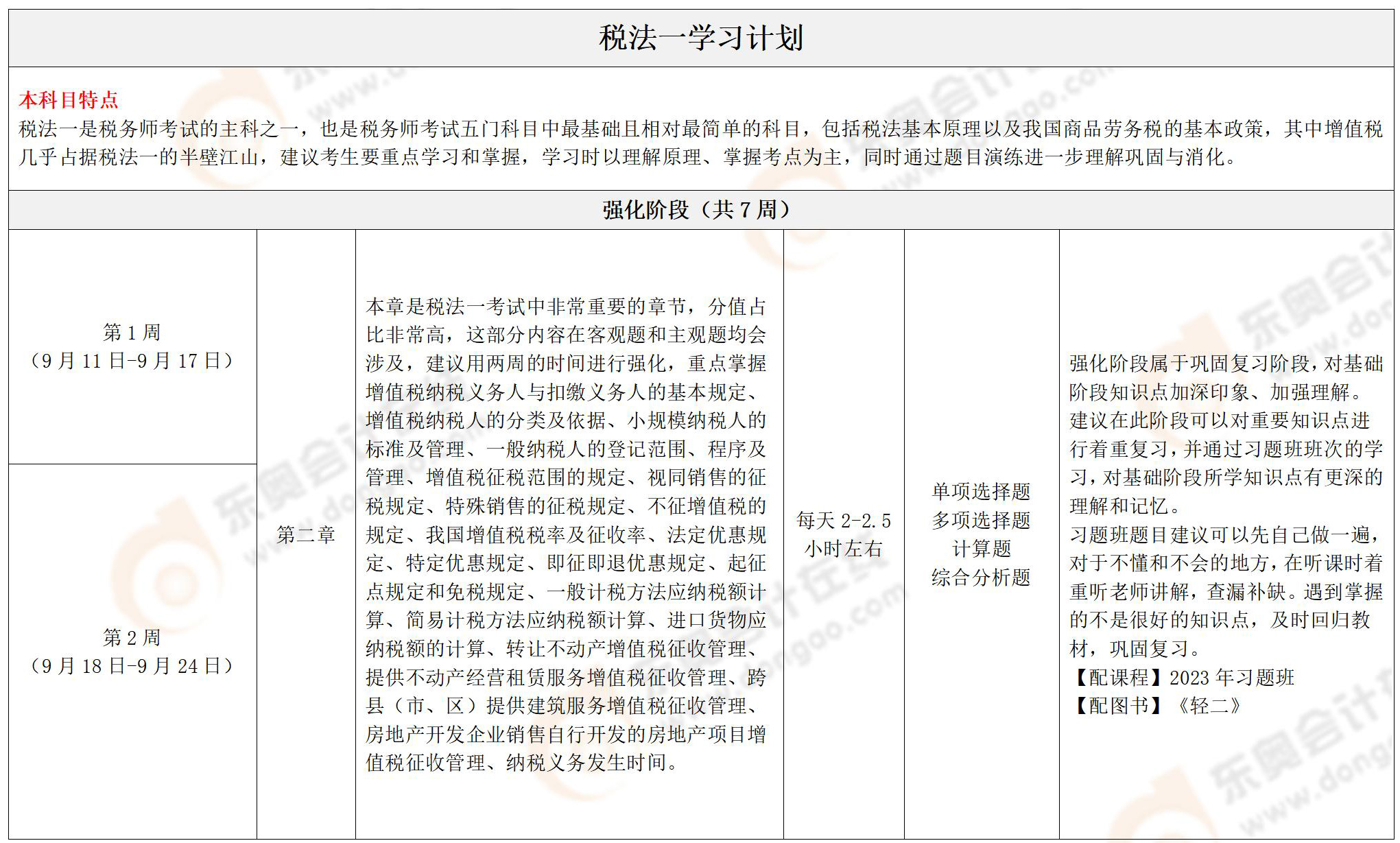 2023年稅務(wù)師《稅法一》強(qiáng)化+沖刺階段學(xué)習(xí)計(jì)劃