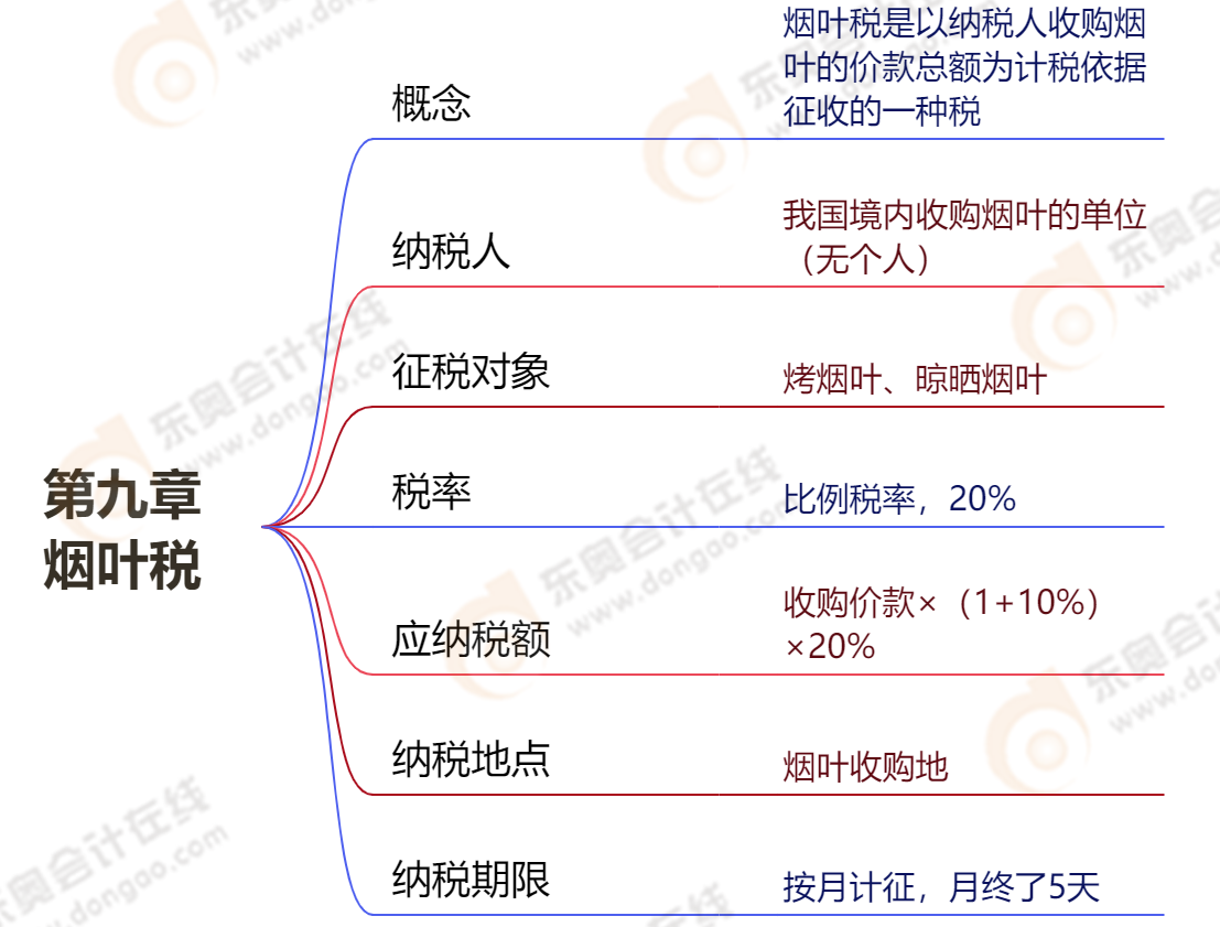 24年稅務(wù)師《稅法一》章節(jié)思維導(dǎo)圖——第九章煙葉稅