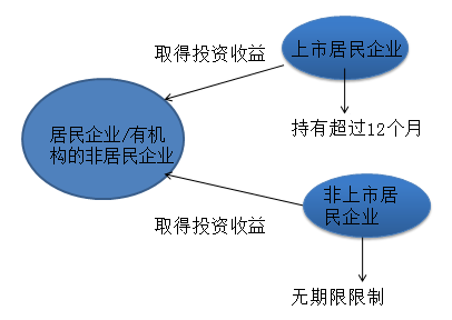 【解釋4】居民企業(yè)或非居民企業(yè)取得的免稅投資收益不包括連續(xù)持有居民企業(yè)公開發(fā)行并上市流通的不足12個月股票取得的投資收益。持有非上市居民企業(yè)股票則沒有期限限制。