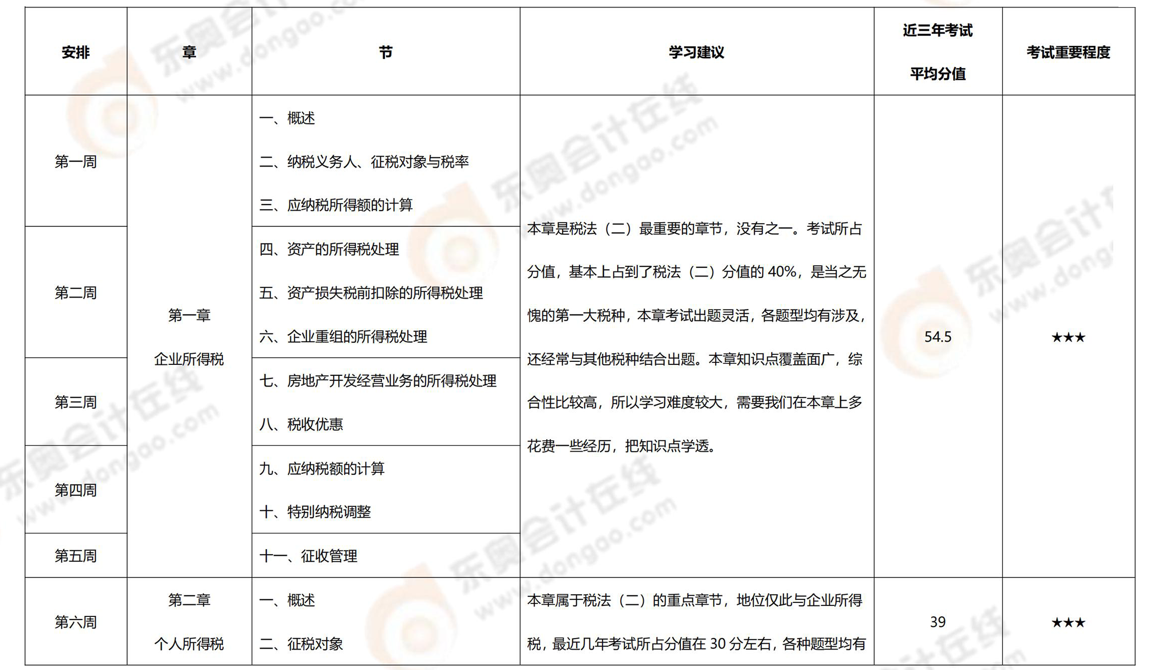2023年稅務(wù)師考試報名正在進(jìn)行中,考生們在報名后要抓緊時間投入到備考中,東奧會計在線根據(jù)新教材的章節(jié)內(nèi)容,及章節(jié)重點程度,為同學(xué)們準(zhǔn)備了《稅法二》科目考試備考計劃,有需要的同學(xué)快來看看吧!