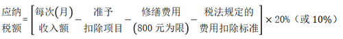 稅法規(guī)定的費(fèi)用扣除標(biāo)準(zhǔn) | ①每次收入≤4000元,定額減除800元 ②每次收入>4000元,定率扣減20% |