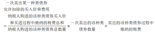 轉(zhuǎn)讓債券,采用加權(quán)平均法確定其應(yīng)予減除的財(cái)產(chǎn)原值和合理費(fèi)用。即:以納稅人購進(jìn)的同一種類債券買入價(jià)和買進(jìn)過程中繳納的稅費(fèi)總和,除以納稅人購進(jìn)的該種類債券數(shù)量之和,乘以納稅人賣出的該種類債券數(shù)量,再加上賣出的該種類債券過程中繳納的稅費(fèi):