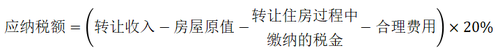 應(yīng)納稅額=(每次收入額-財(cái)產(chǎn)原值-合理費(fèi)用)×20%