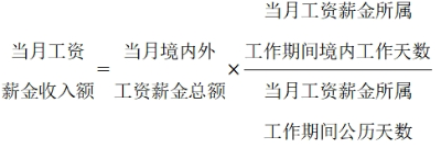 在一個(gè)納稅年度內(nèi),在境內(nèi)累計(jì)居住不超過(guò)90天的非居民個(gè)人,僅就歸屬于境內(nèi)工作期間并由境內(nèi)雇主支付或者負(fù)擔(dān)的工資薪金所得計(jì)算繳納個(gè)人所得稅。當(dāng)月工資薪金收入額的計(jì)算公式如下(公式一):