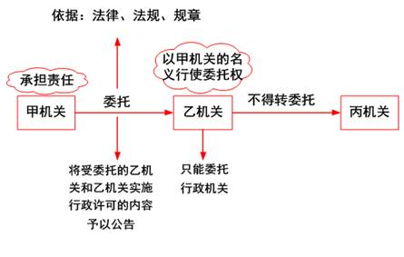 受委托的行政機關 | (1)行政機關在其法定職權范圍內,依照法律、法規(guī)、規(guī)章的規(guī)定,可以委托其他行政機關實施行政許可 (2)委托機關應當將受委托行政機關和受委托實施行政許可的內容予以公告 (3)受委托的行政機關在委托范圍內,以委托行政機關名義實施行政許可;不得再委托其他組織或者個人實施行政許可 (4)委托機關對受委托機關的行為后果承擔法律責任 |