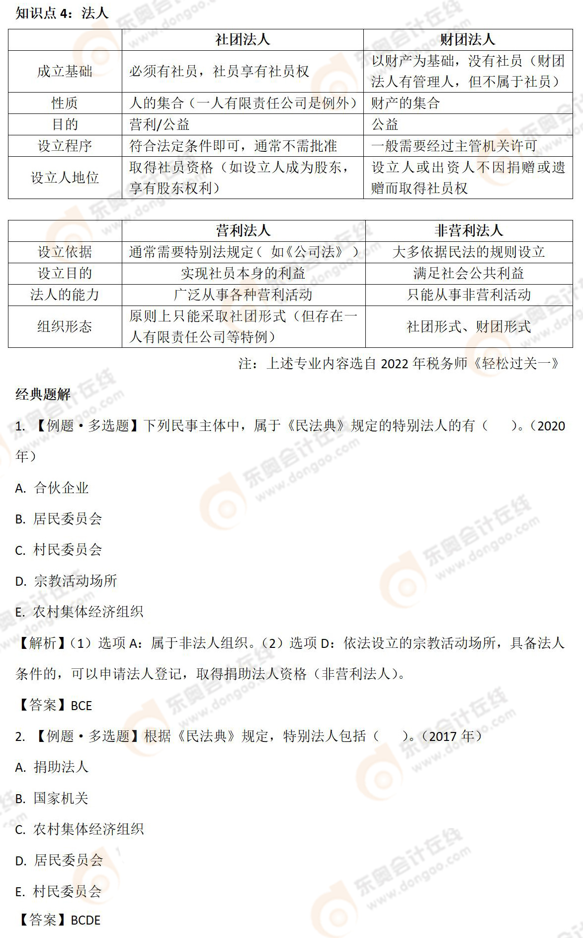 2022稅務(wù)師《涉稅服務(wù)相關(guān)法律》易錯易混知識點(diǎn):法人