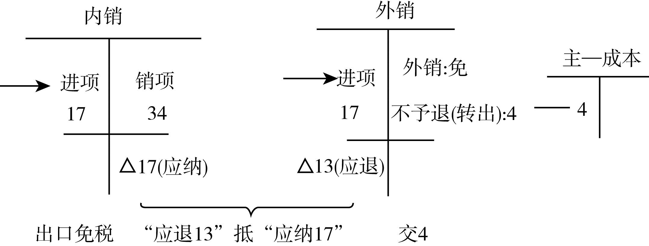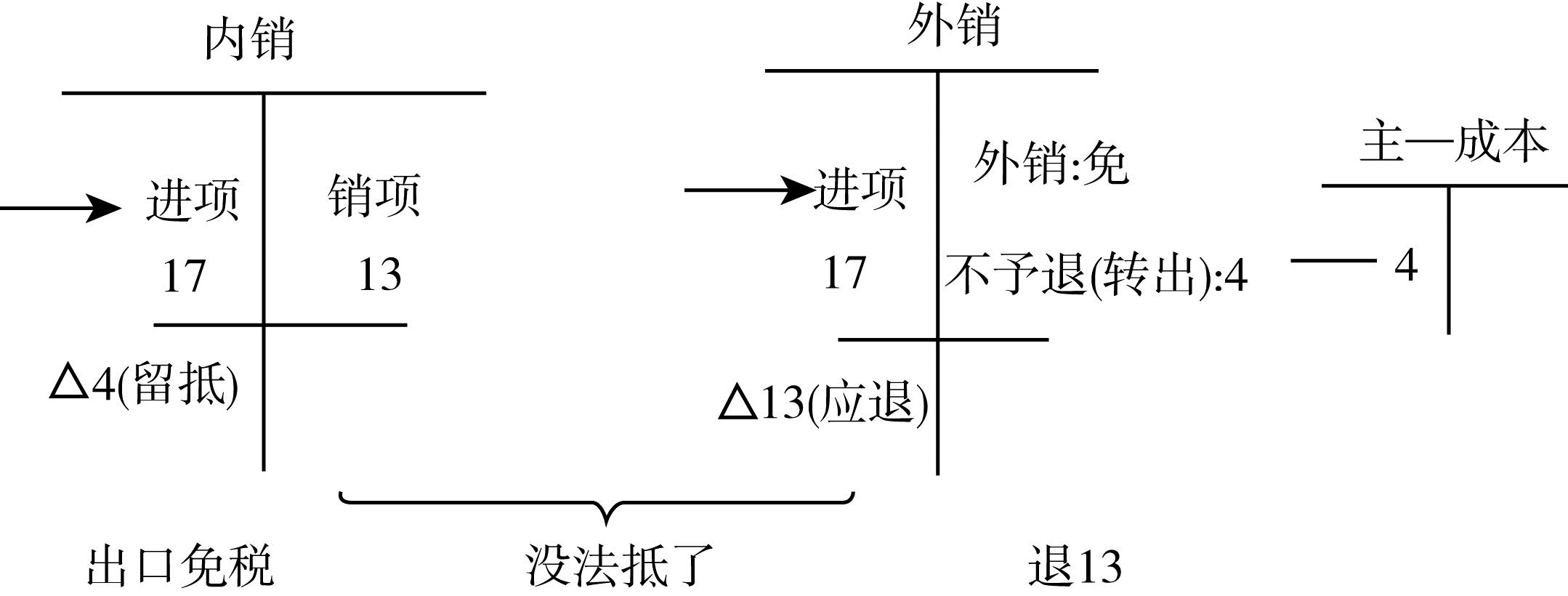 “抵”--就是用“內(nèi)銷應(yīng)納的稅款17”抵“外銷應(yīng)退的稅稅款13”。