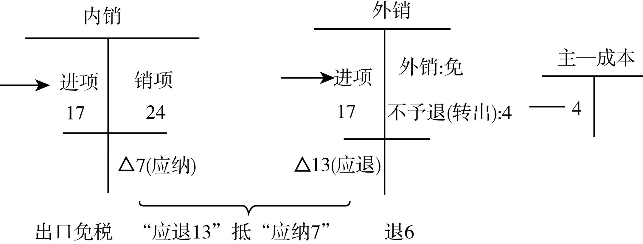 “抵”--就是用“內(nèi)銷應(yīng)納的稅款7”抵“外銷應(yīng)退的稅稅款13”。