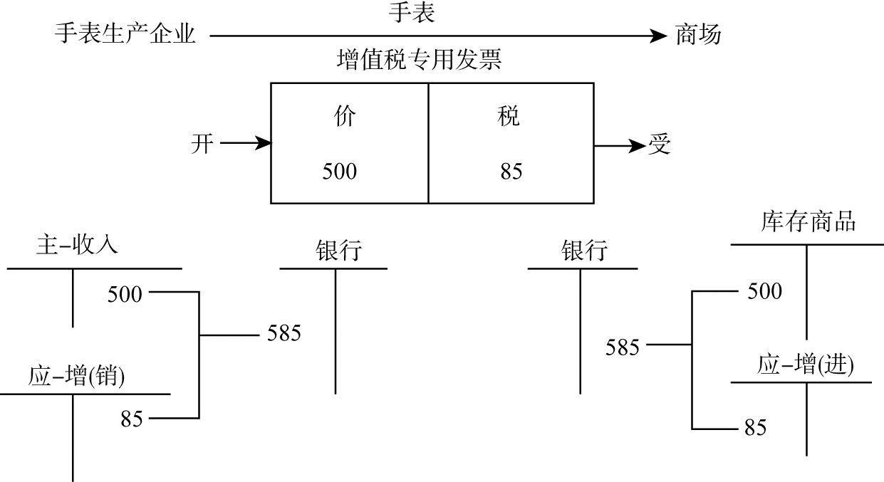 購進手表時不僅要支付手表價款500元,還要另外支付手表增值稅85元。