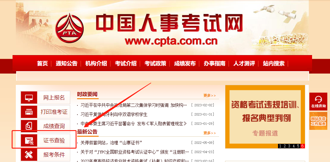 步驟一:登錄中國人事考試網(wǎng)(http://cpta.mohrss.gov.cn)
